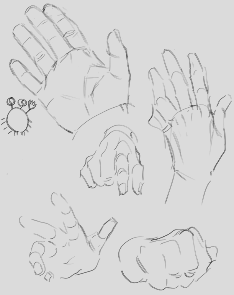 左上は自分の手の模写なんですが、あの…雑魚すぎるだろ!ってマジで資料にならないのでモデルみたいな手が羨ましいよ~